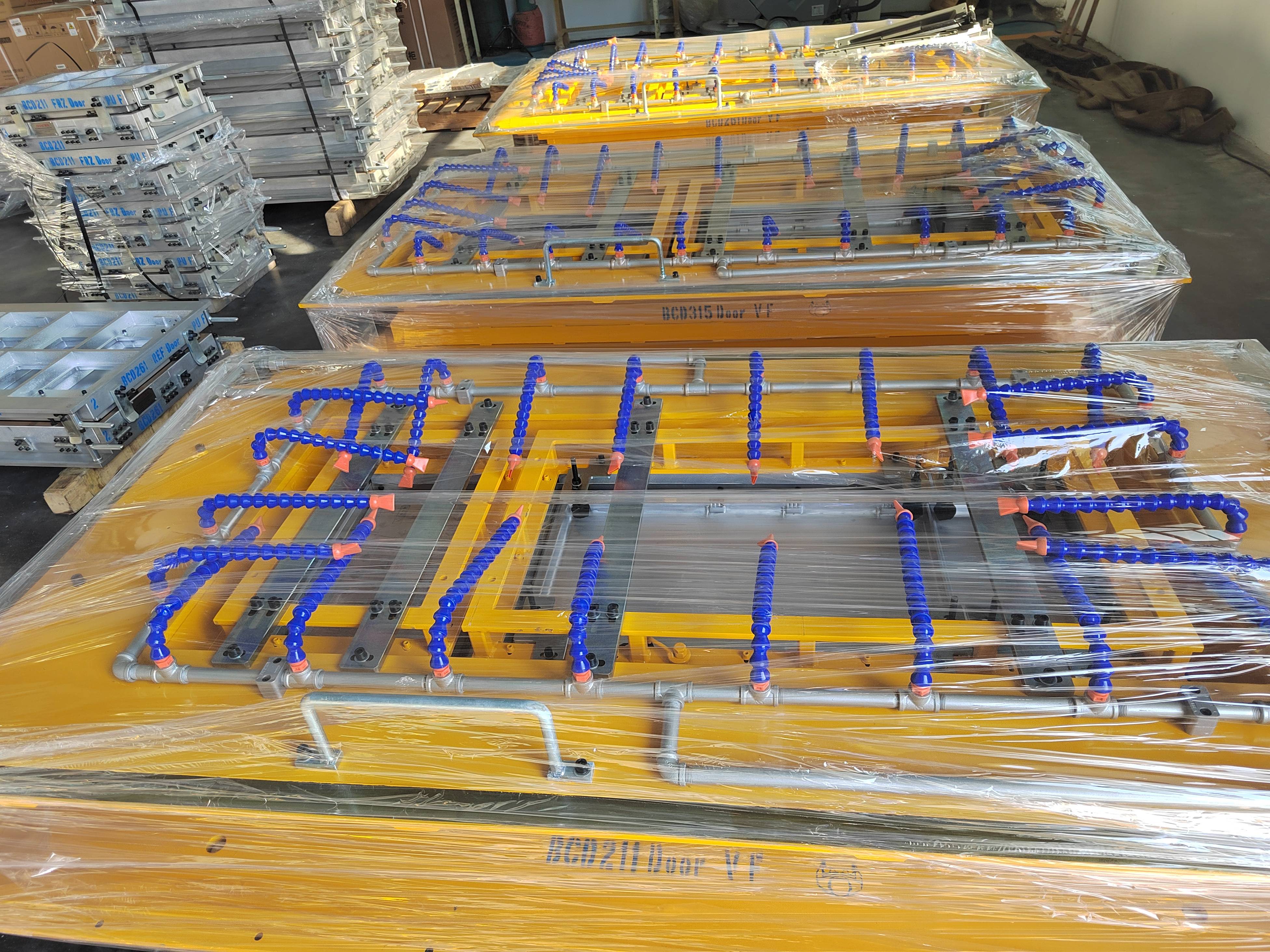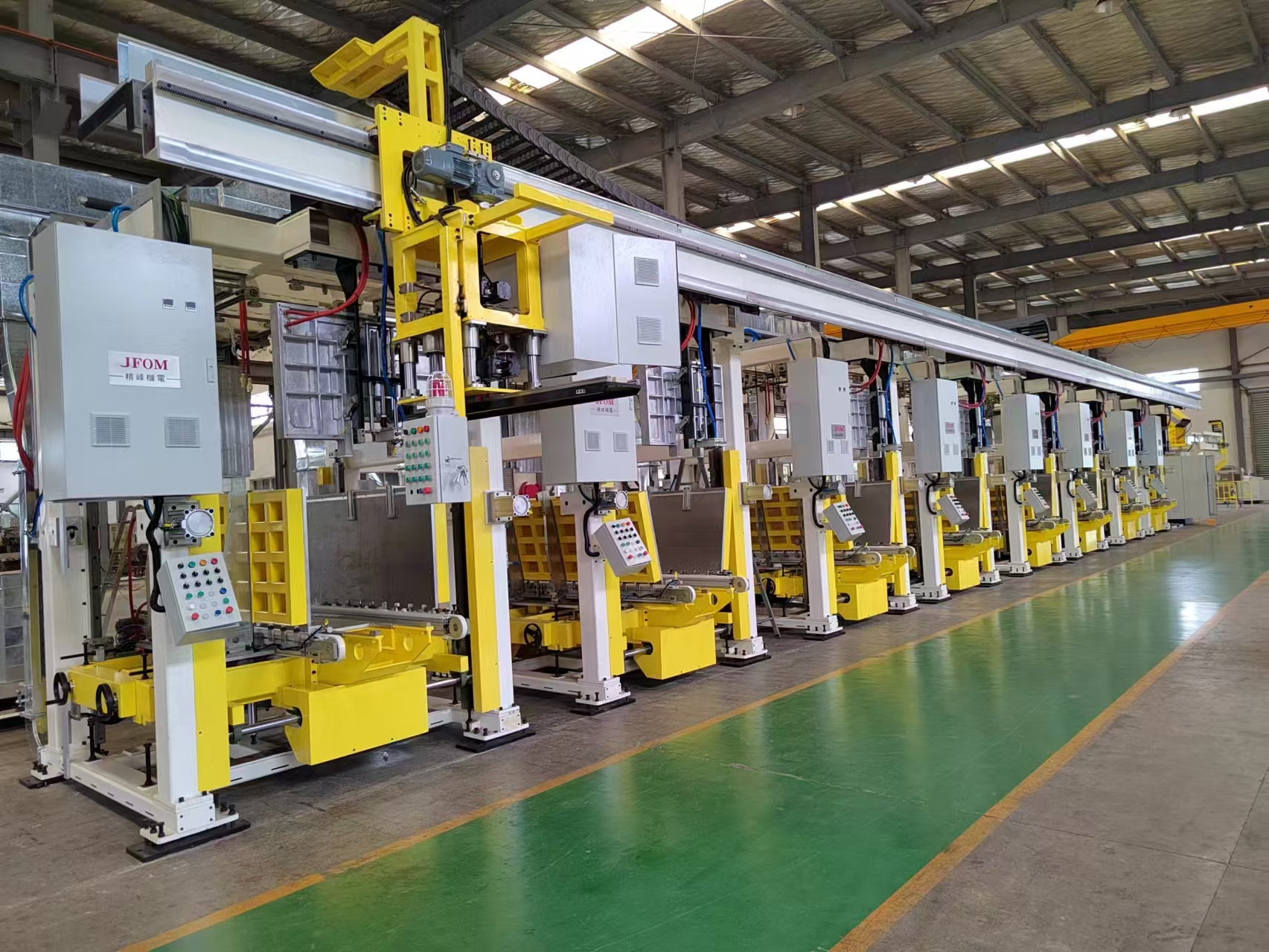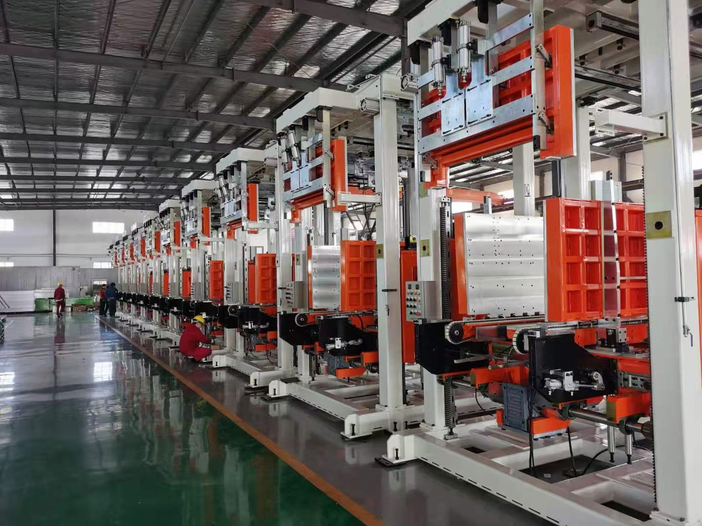 該發(fā)泡線(xiàn)采用直線(xiàn)式布局。夾具具有自動(dòng)堵泡功能,換模采用氣缸或人工驅(qū)動(dòng)連桿機(jī)構(gòu),有人工控制和電氣控制雙重自鎖功能。適用于不同長(zhǎng)、寬、高的箱體生產(chǎn)。生產(chǎn)線(xiàn)具有外形美觀(guān)大方、結(jié)構(gòu)緊湊、環(huán)境污染少、勞動(dòng)強(qiáng)度小、占地面積小、功能強(qiáng)、生產(chǎn)效率高、多品種柔性生產(chǎn)等特點(diǎn)。