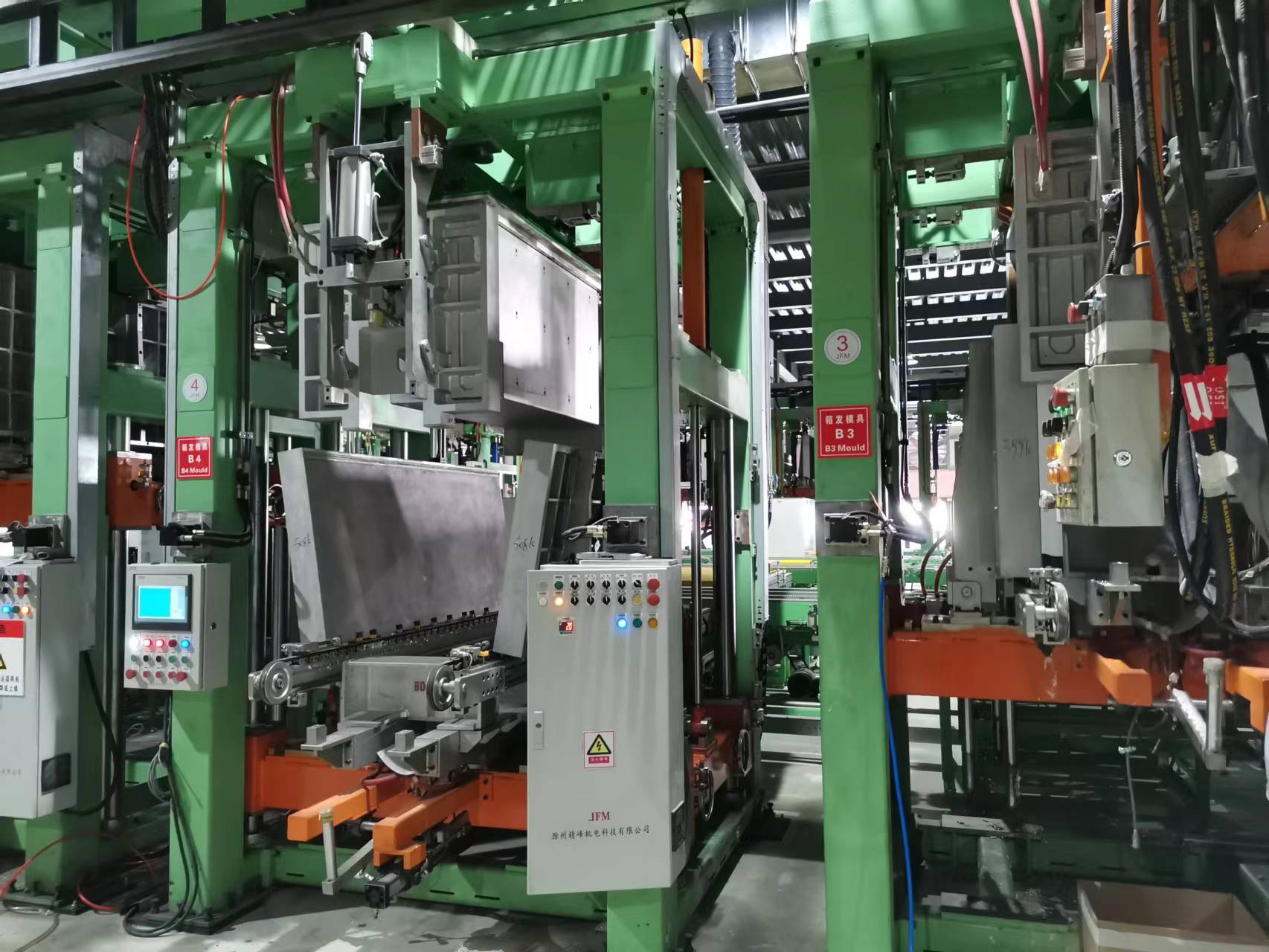 該發(fā)泡線采用直線式布局,夾具各模板采用水加熱方式。夾具具有自動堵泡功能,換模采用氣缸或人工驅(qū)動連桿機構(gòu),有人工控制和電氣控制雙重自鎖功能。適用于不同長、寬、高的箱體生產(chǎn)。生產(chǎn)線具有外形美觀大方、結(jié)構(gòu)緊湊、環(huán)境污染少、勞動強度小、占地面積小、功能強、生產(chǎn)效率高、多品種柔性生產(chǎn)等特點